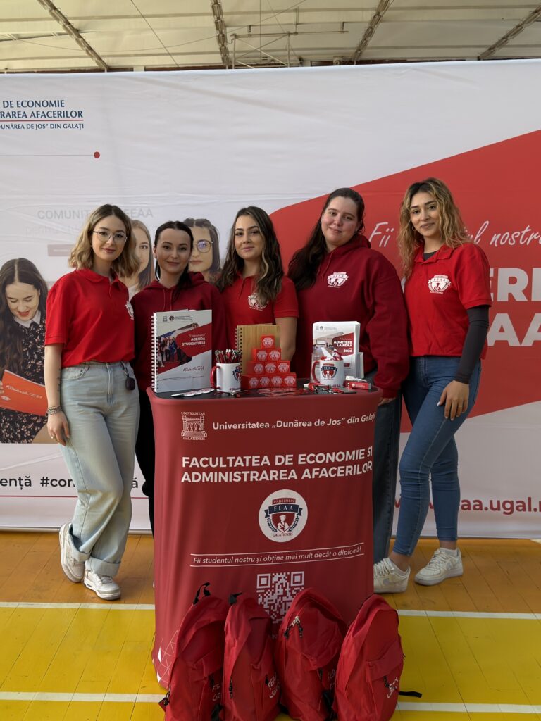 Facultatea de Economie și Administrarea Afacerilor (FEAA Galați) a captat și de această dată atenția vizitatorilor. Echipa de studenți voluntari i-a întâmpinat pe liceenii tulceni cu informații esențiale despre specializările facultății și despre procesul de admitere pentru anul universitar 2026. Tinerii au manifestat un interes ridicat pentru construirea unei cariere în sectoare de viitor, analizând oportunitățile oferite de programele de management, marketing, finanțe-bănci, contabilitate, informatică economică, dar și de celelalte direcții de studiu disponibile.