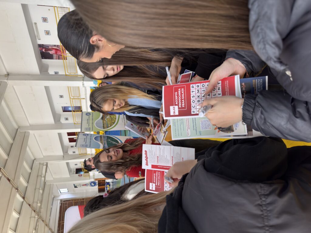Pentru elevii din județul Tulcea, mutarea într-un alt oraș reprezintă un pas important, motiv pentru care au fost extrem de interesați de infrastructura Universității „Dunărea de Jos” din Galați. Discuțiile de la stand s-au axat pe viața de zi cu zi din campusul studențesc. Tinerii au dorit să afle detalii despre confortul căminelor, spațiile de studiu moderne și, mai ales, despre comunitatea din care ar urma să facă parte. Voluntarii le-au povestit despre mediul studențesc efervescent de la Galați, despre evenimentele de integrare și despre cât de repede te poți adapta într-un oraș universitar orientat către tineri.