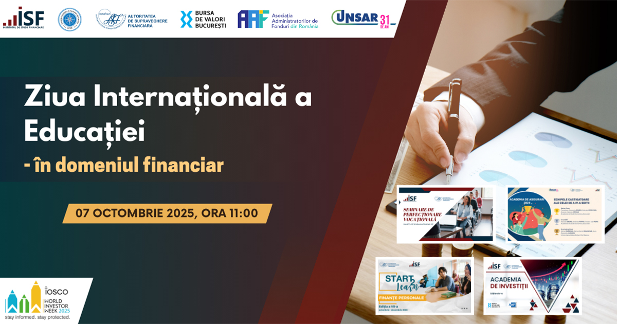 Institutul de Studii Financiare – ISF, Autoritatea de Supraveghere Financiară – ASF și Asociația Facultăților de Economie din România – AFER îşi propun să celebreze împreună cu partenerii universitari Ziua Internațională a Educației, adaptând mesajul la specificul domeniului financiar nebancar.