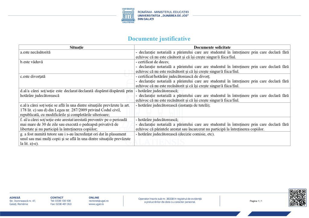 Documente necesare pentru cazarea în căminele studențești din campusul ”Alexandru Ioan Cuza” Galați: