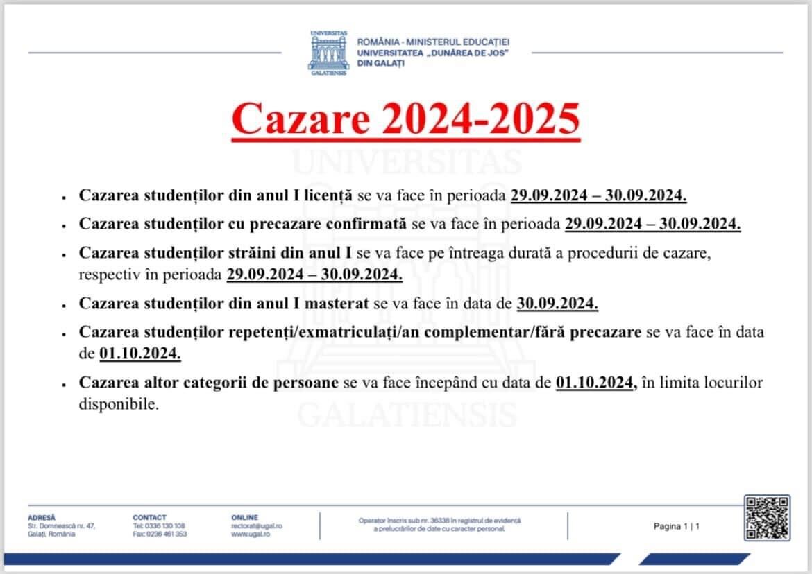 Întrucât anul acesta a fost unul atipic, având în vedere situația provocată de ciclonul Boris, procedura de cazare pentru anul 2024 – 2025 se va desfășura astfel: