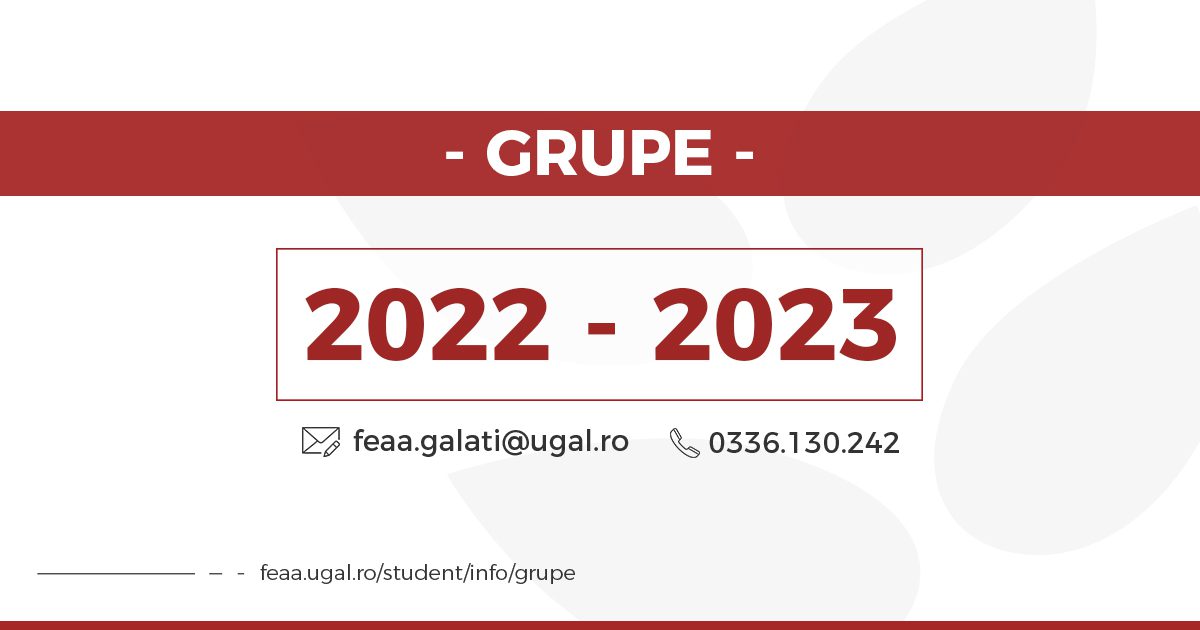 Cererile pentru restanţe/mărire de notă (însoţite de chitanţe acolo unde este cazul) se transmit în perioada: 26 iunie – 9 iulie la adresa restante.feaa@ugal.ro, în