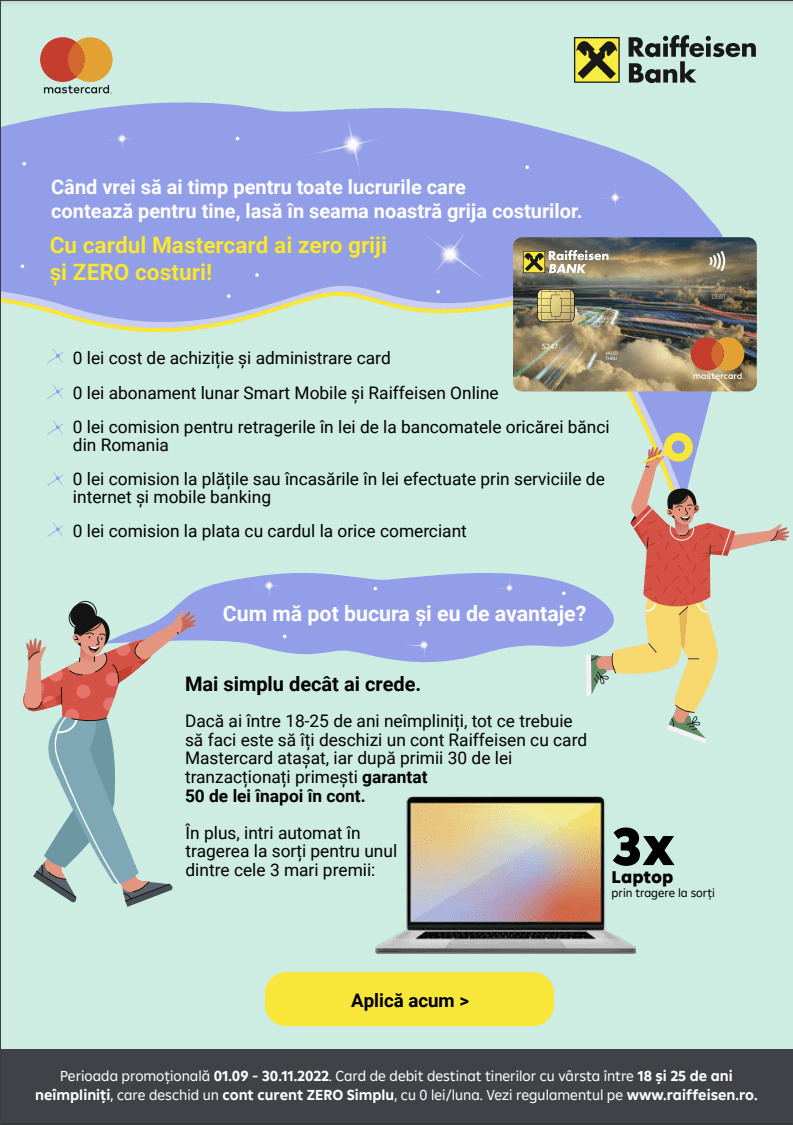 Începand cu data de 01.09.2022 devine activa campania de achizitionare clienti cu varsta cuprinsa intre 18 (impliniti la data de 01.09.2022) – 25 de ani, neimpliniti, in cadrul universitatilor