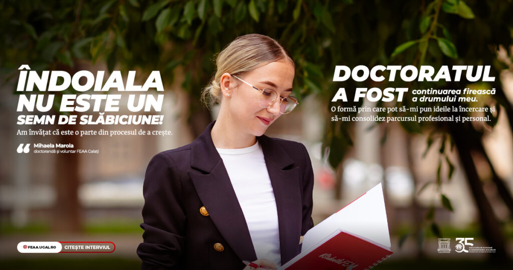 Doctoratul a venit firesc, ca o continuare a tot ce am construit până atunci… o formă prin care pot să-mi pun ideile la încercare și să-mi consolidez parcursul profesional și personal.