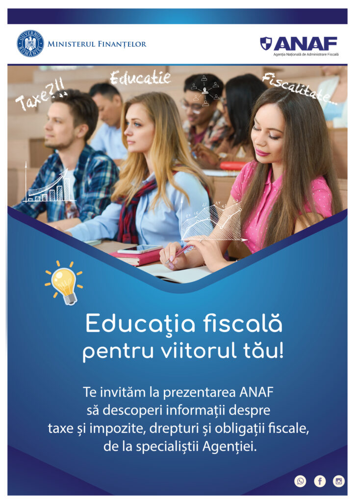 Agenția Națională de Administrare Fiscală (ANAF), în colaborare cu Facultatea de Economie și Administrarea Afacerilor din Galați, organizează miercuri, 10 decembrie, de la ora 12:00, o sesiune dedicată informării fiscale.