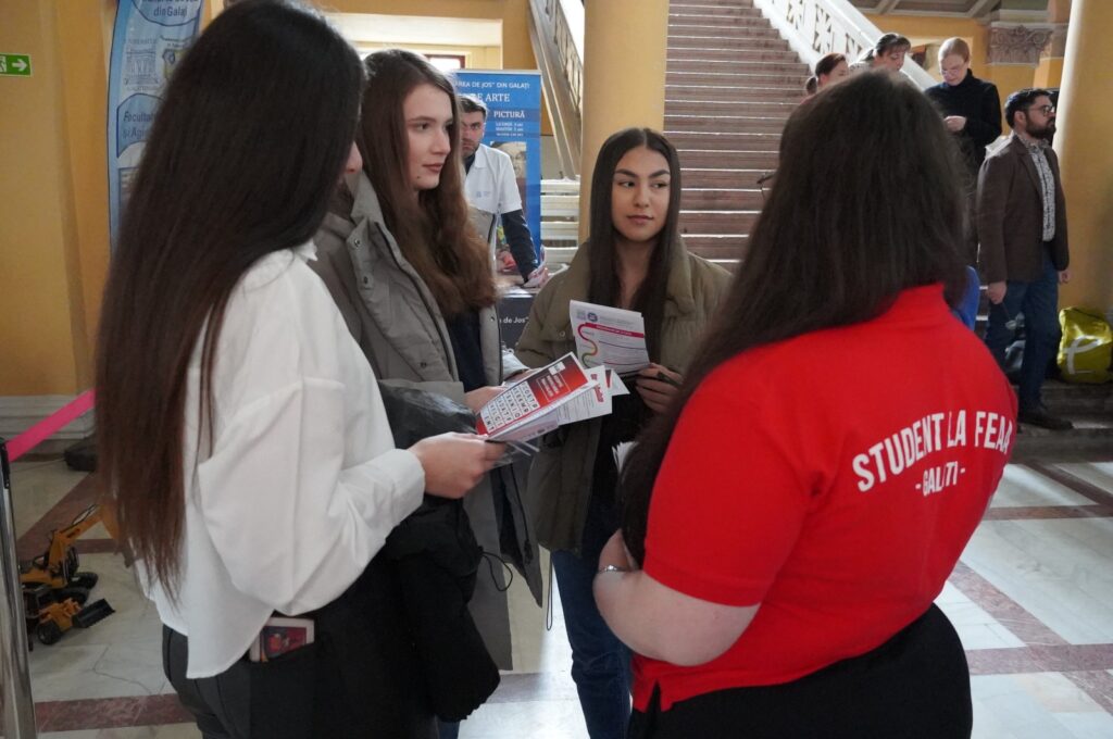 Studenții voluntari ai FEAA Galați au jucat un rol important în cadrul târgului, împărtășind din propria experiență academică. Prin prezentarea proiectelor studențești și a activităților extracurriculare în care sunt implicați, aceștia le-au oferit viitorilor candidați o perspectivă clară, transparentă și autentică asupra a ceea ce înseamnă studenția la Galați.